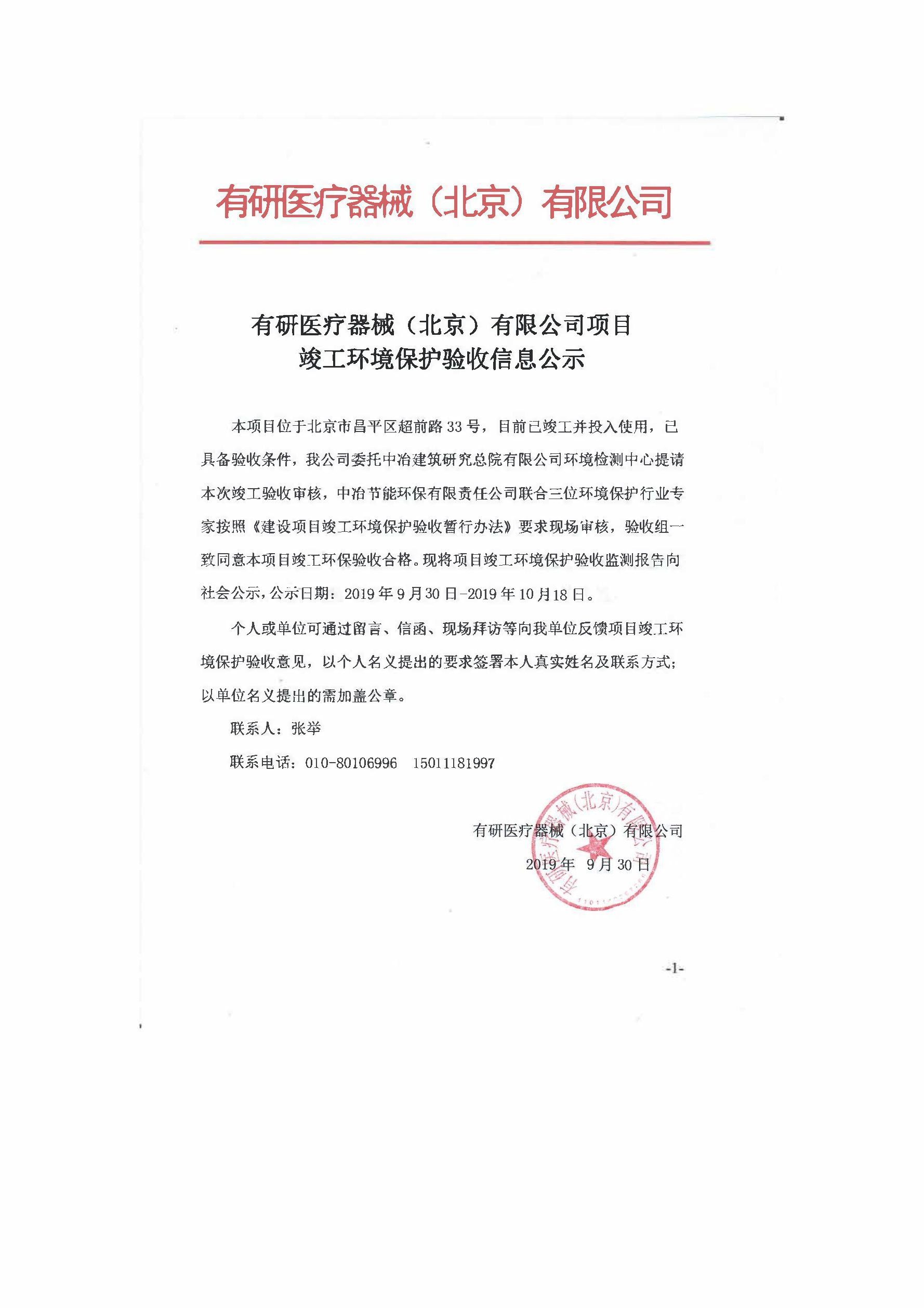 有研醫療器械(北京)有限公司項目竣工環(huán)境保護驗收信息公示...